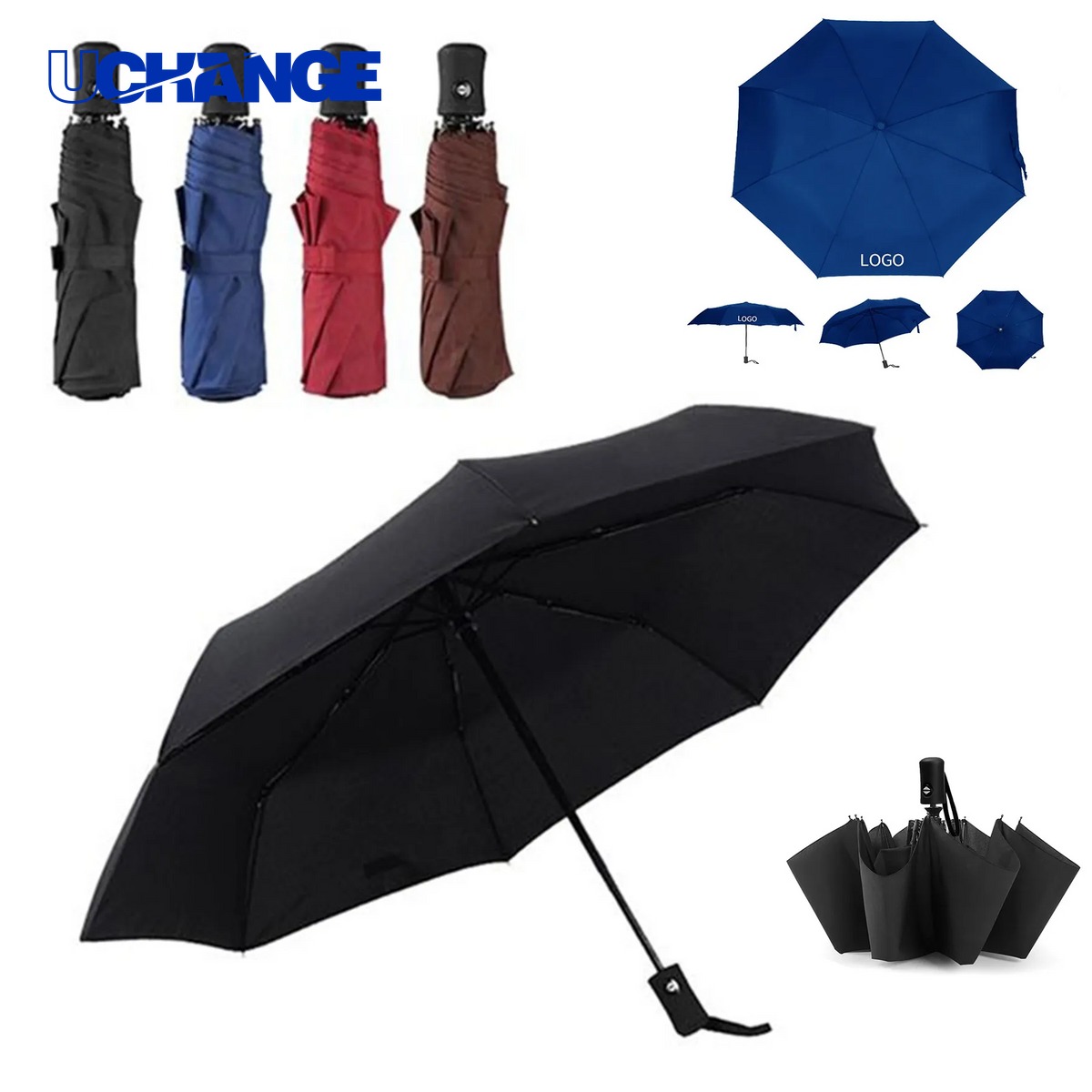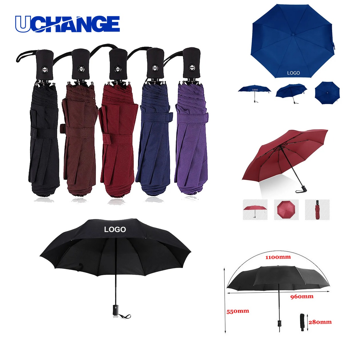 Let's order this budget 42" Arc umbrella with large imprint size as the giveaways for your next promotional events. This 42" Arc promotional umbrella is made of 210T polyester canopy, features 8 ribs, steel frame and rubber handle. Custom logo is welcome. QTY for 500pcs and over by ocean. Each one can also be purchased blank or printed. We can rush service and guarantee the perfect quality.