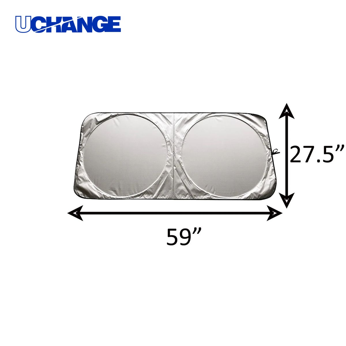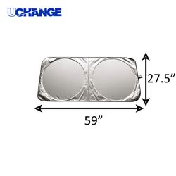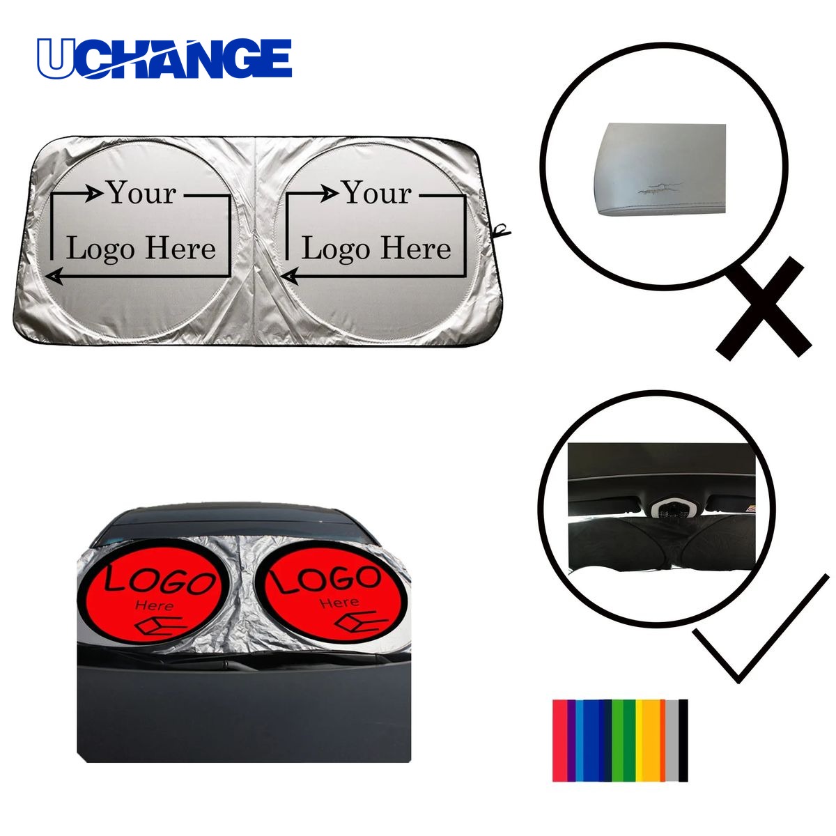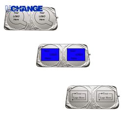 With this sunshade, you can return to a cool car that has been sitting in the middle of the hot sun. This item is made using eco-friendly, odorless cloth that has been coated in a silver material. It features a double circle design with measurements of 59" x 27.5" to better fit inside of your car's windshield. Orders of 10,000 pieces or greater are eligible for sea shipping. You can send your business's logo all over when you choose to customize this windshield sun shade.